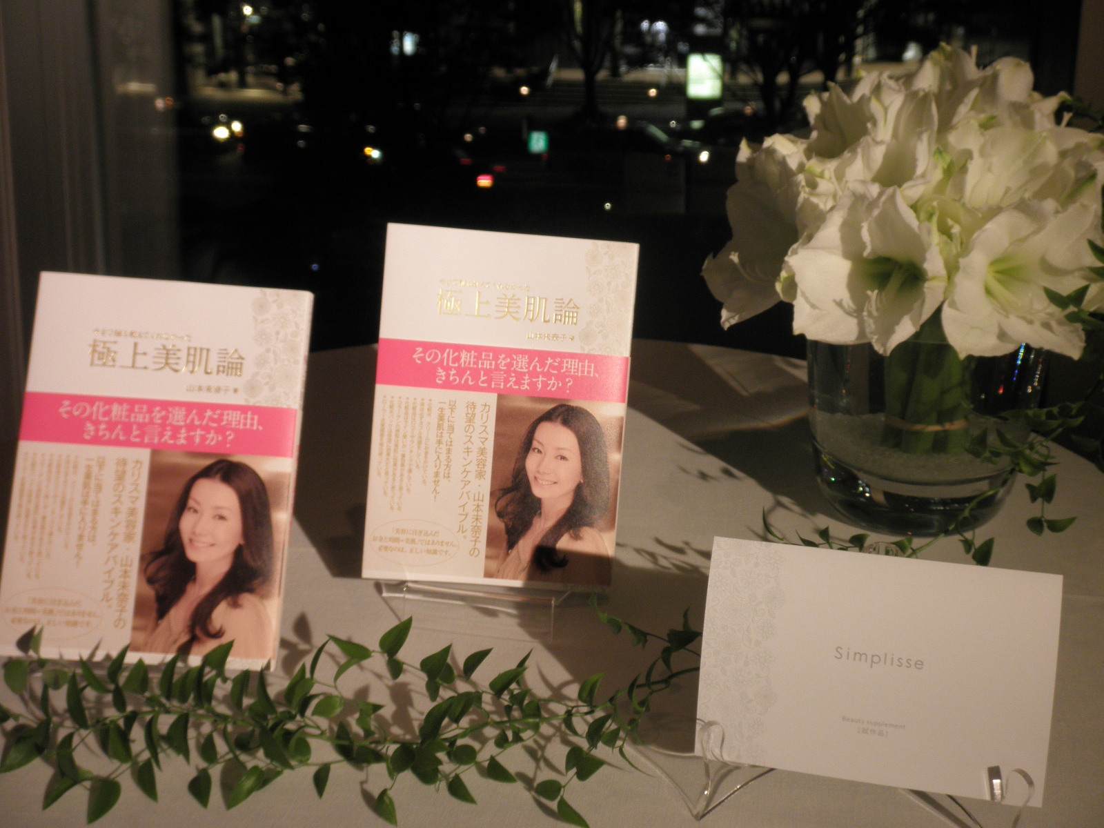今日は、カリスマ美容家の山本未奈子さんの出版記念パーティー@グランドハイアット東京に行って来ました。本のタイトルは『今まで誰も教えてくれなかった 極上美肌論』。今年の7月にSimplisse(シンプリス)という画期的な美容液を開発した彼女の渾身の一作(目から鱗の美容論が盛り沢山!)です。