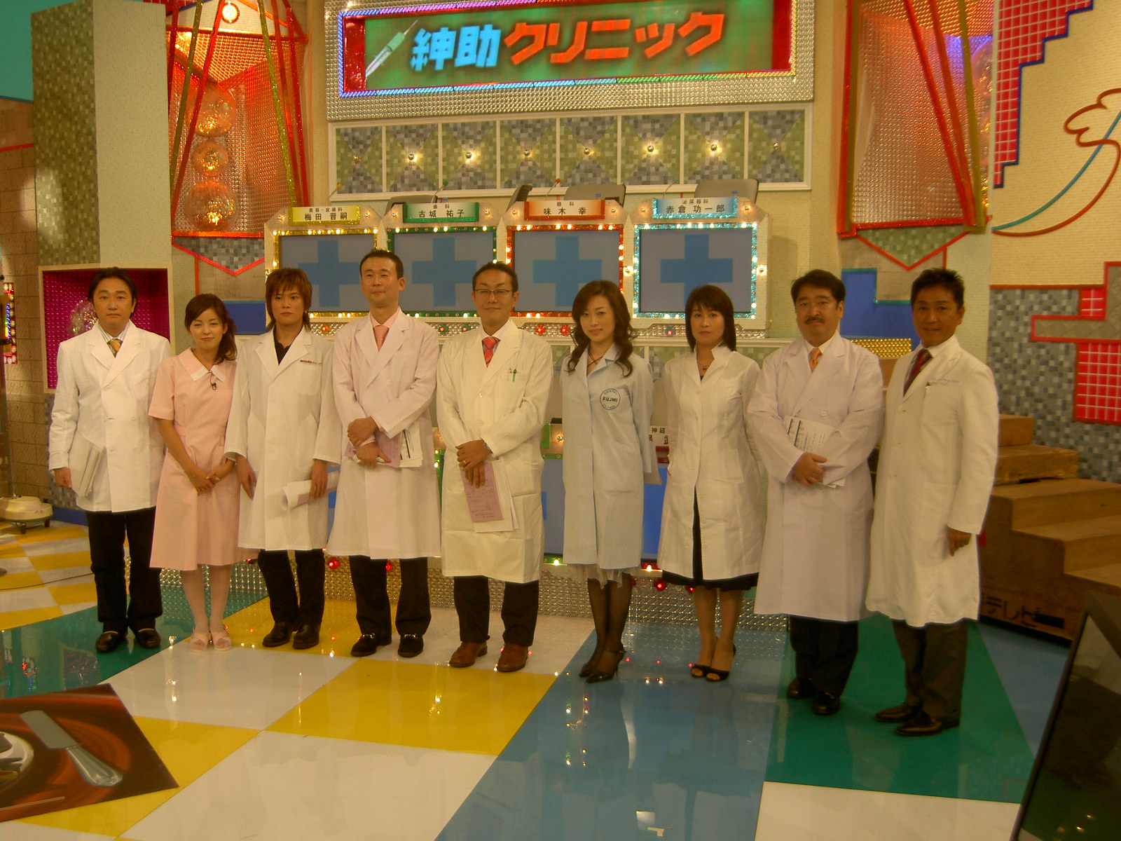 写真はアンチエイジングパートナーズの展示ブース前で。左から3番目が堺英彰先生。右から2番目が友利新先生。