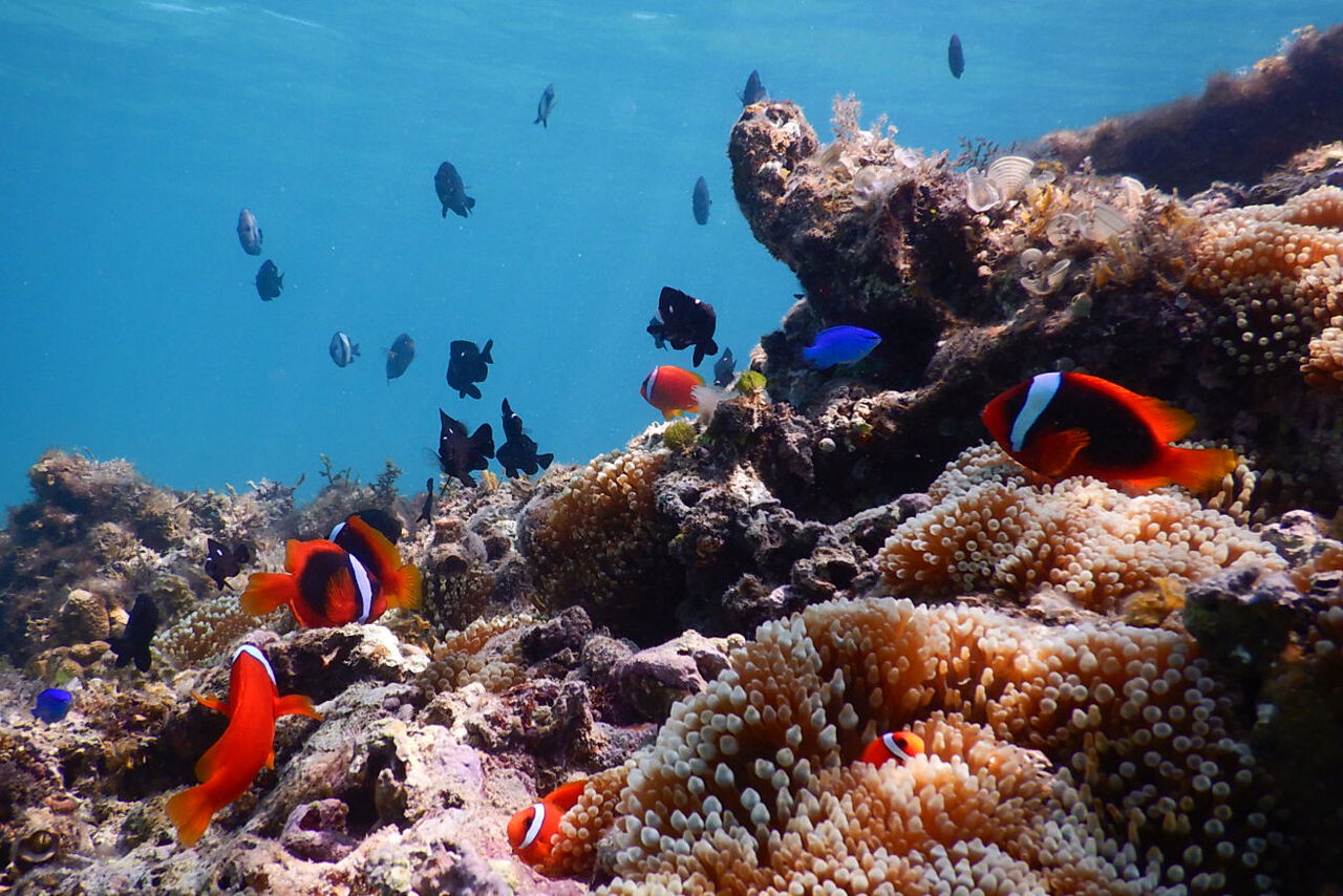 ずっとサンゴ礁が続く遠浅で、膝くらいの深さのところに