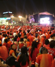 この赤Tシャツの渦は、市庁前広場から宿泊したロッテホテルの真下まで広がり、コンサート&応援は夜8時前から韓国対スイス戦終了の翌朝午前6時まで、途切れることなく、力強く、延々と続くのでありました。「恐ろしべき」レッドデビル。