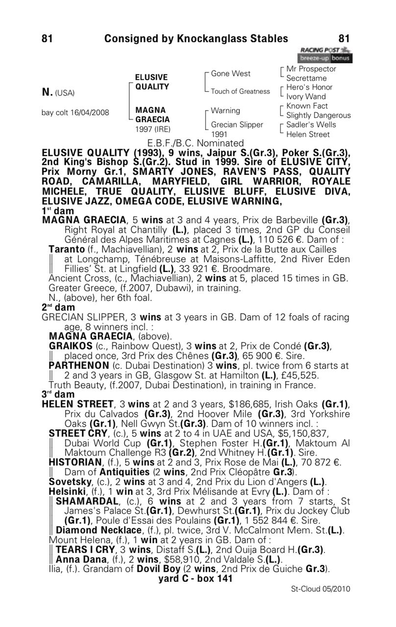 Elusive Quality (KY) - Magna Graecia(IRE), by Warning (GB)