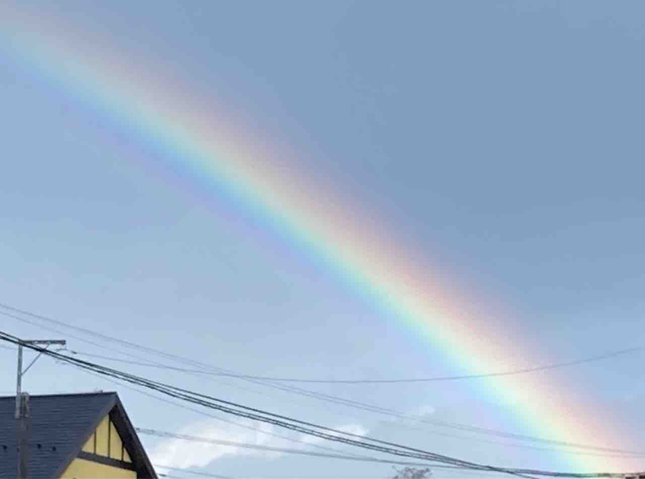 残念すぎるので、おとといの日曜に朝マック行ってたら🌈が出てたので、思わずパシャ📱