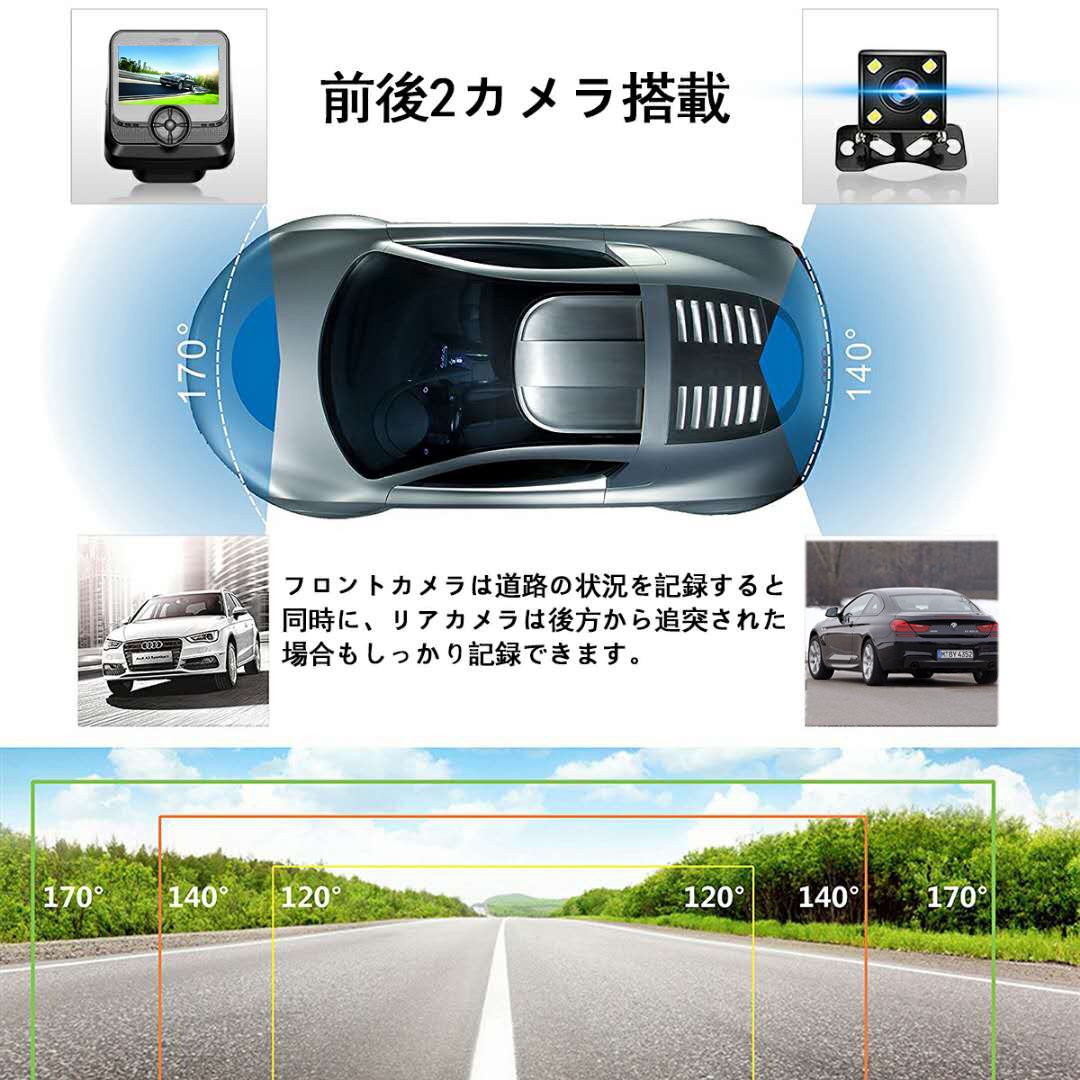 ドライブレコーダー 前後カメラ SONYセンサー/レンズ 1200万画素 170度広角