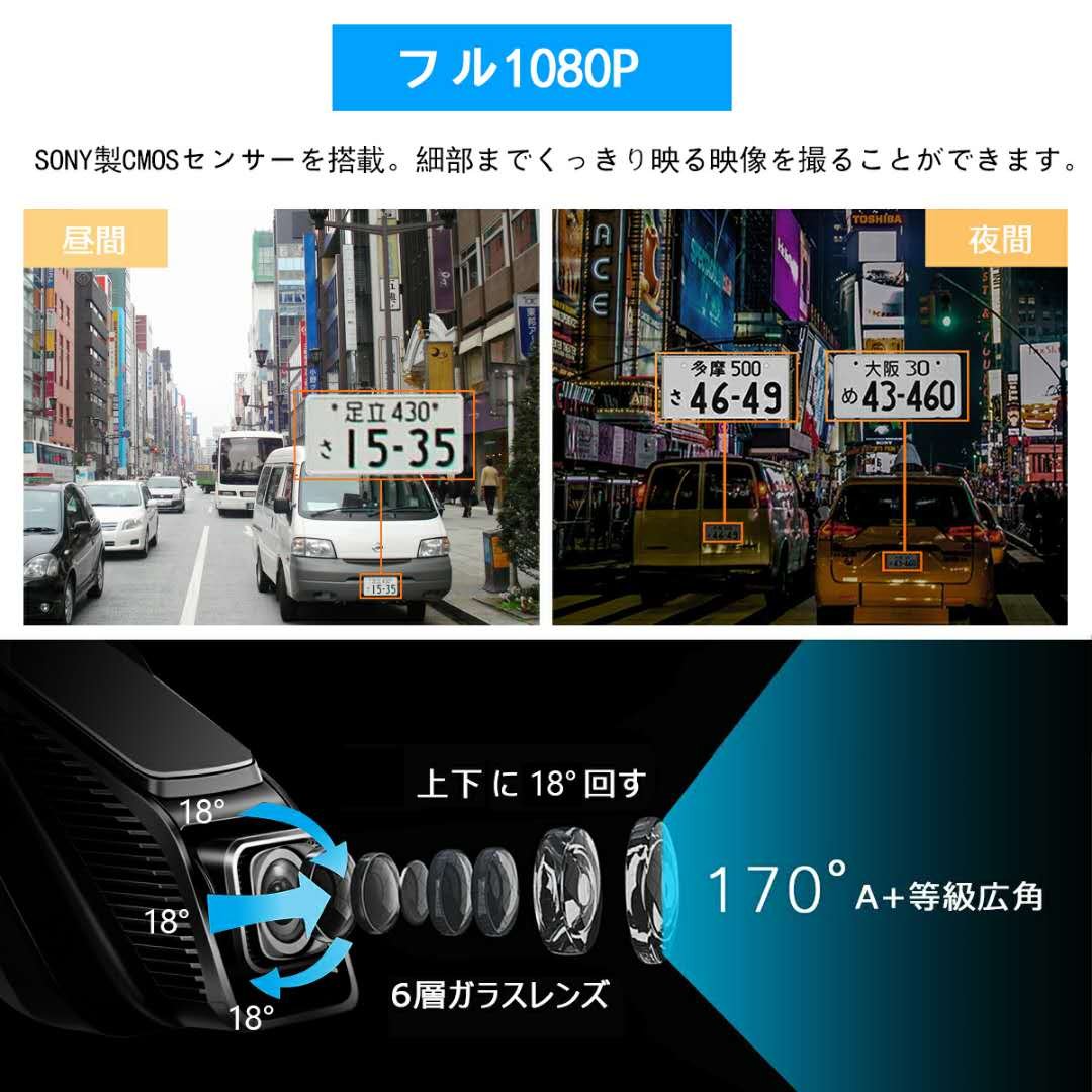 ドライブレコーダー 前後カメラ SONYセンサー/レンズ 1200万画素 170度広角