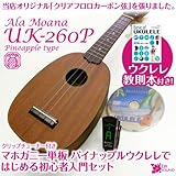ウクレレ初心者 パイナップル ALA MOANA UK-260P ソフトケース 教則本 クリップチューナー DVD付【SJB】◎教本とかチューナー付きで パイナップル型ならこれ