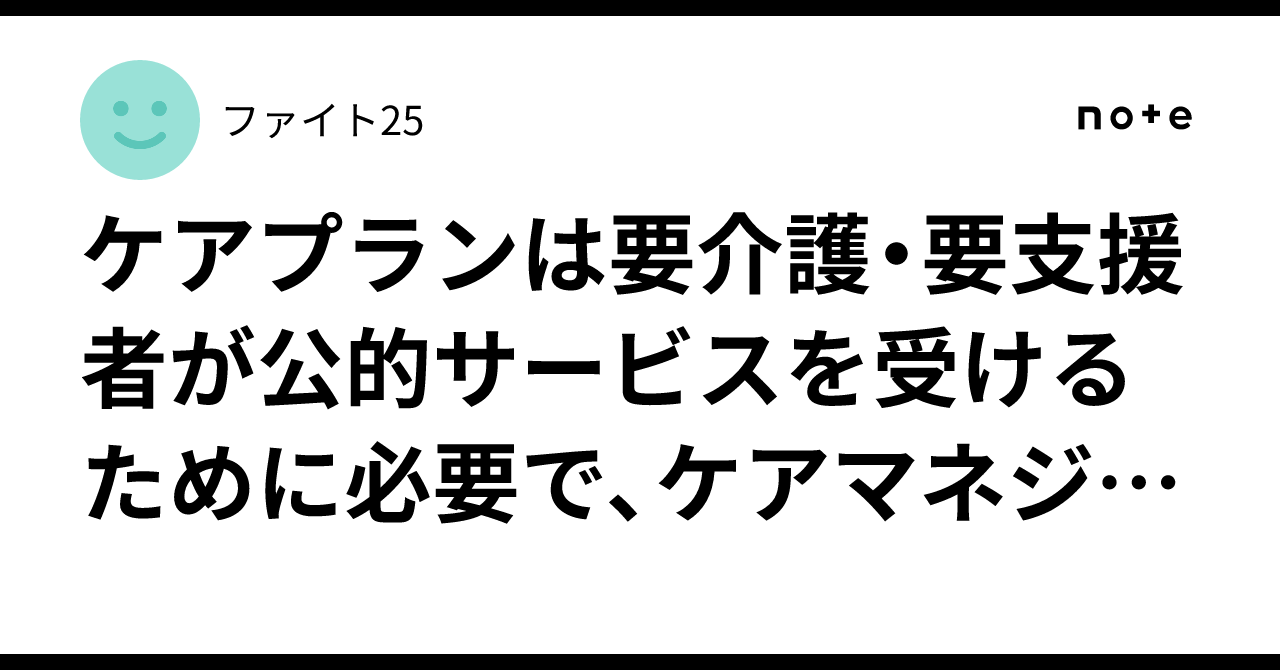 ケアプランは要介護・要支援者が公的サービスを受けるために必要で、ケアマネジャー(介護支援専門員)が作成する。サービス内容を記載し、費用を公費と保険料でまかなうことで自己負担をゼロ。 改正案1割負|ファイト25介護のケアプラン作成費1割負担導入 介護保険法改正案を国会提出 - 日本経済新聞政府は3日、一部の公的介護サービスの利用者に計画書「ケアプラン」の作成費用の1割負担を求める介護保険法などの改正案を国会にwww.nikkei.com ケアプラン(居宅サービス計画)の作成費用は、 介護保険が適用されるため、利用者の自己負担は無料(0円)…note.com