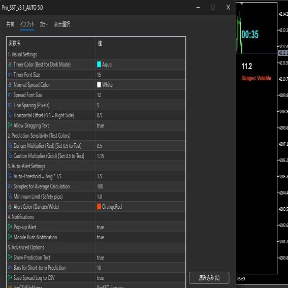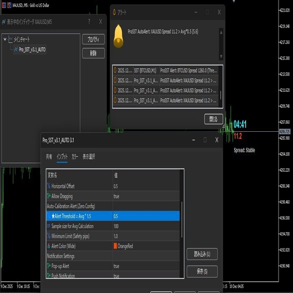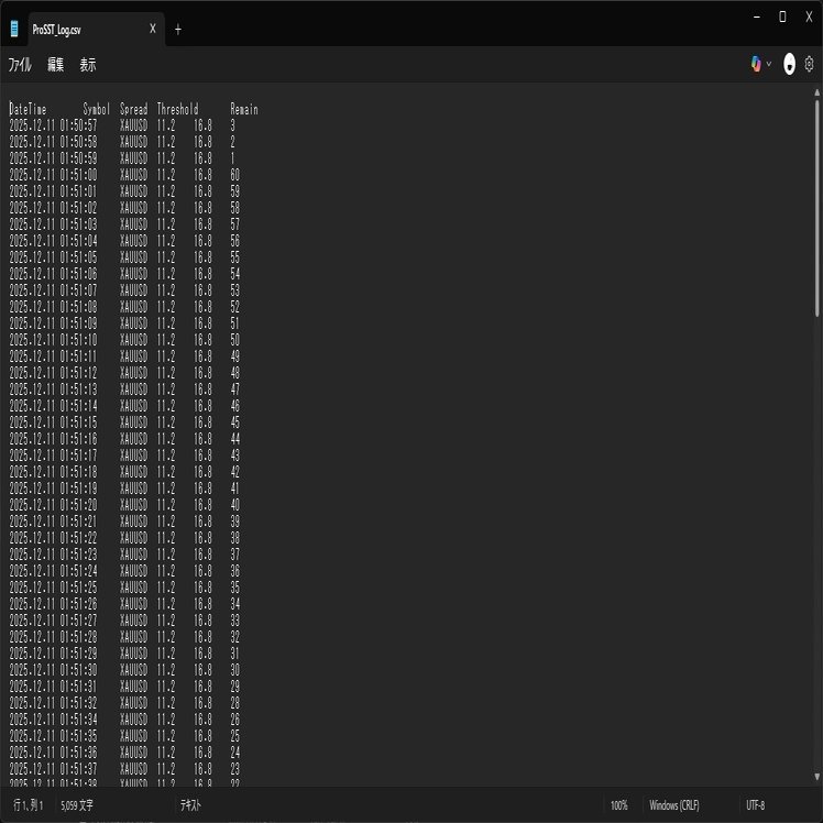 CSVログ分析: スプレッドの履歴を1秒間隔で自動保存。後で「この業者は指標時にどこまで広げたか?」をExcelで分析できます。