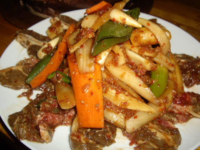 ウルムチの人が、この料理を食べているかどうかはわかりませんが、羊を日常的に食べる文化だし、延辺料理はこんな味が多いので、ウルムチなイメージなんです。