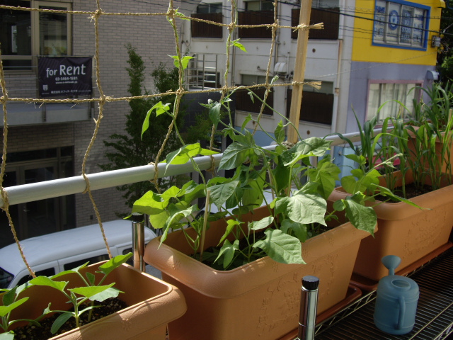 ベランダで、雑穀や朝顔やひょうたんを育てたきっかけは、「中村玄」の向かいに飲食店ビルが建ったから。