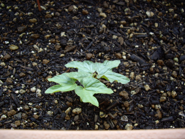 発芽するまでは、温度を上げて、ビニールハウス状態にするとか言って、プランターにサランラップをかけていた。