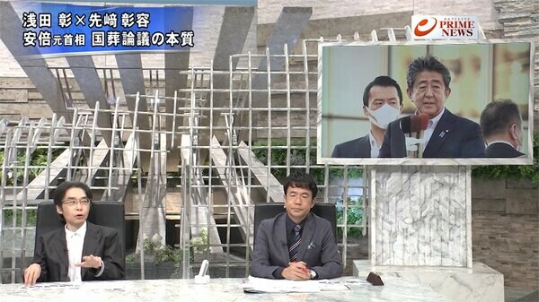 金曜のBSフジ「プライムニュース」に,また浅田彰が先崎彰容と一緒に出演していたので,忙しいさなか最初から最後まで観てしまった。確か半年くらい前,ロシアのウクライナ侵攻からまだ間もない頃に二人は同番組に出ていたのだが,その時と比べて今回は,二人の立場の違いが際立っていたように思う。すなわち,浅田さんは左派・リベラル色をより鮮明にしたのに対し,先崎は保守主義や国家主義への傾倒をさらけ出した。その意味で今回の放送は大変興味深いものだった。
