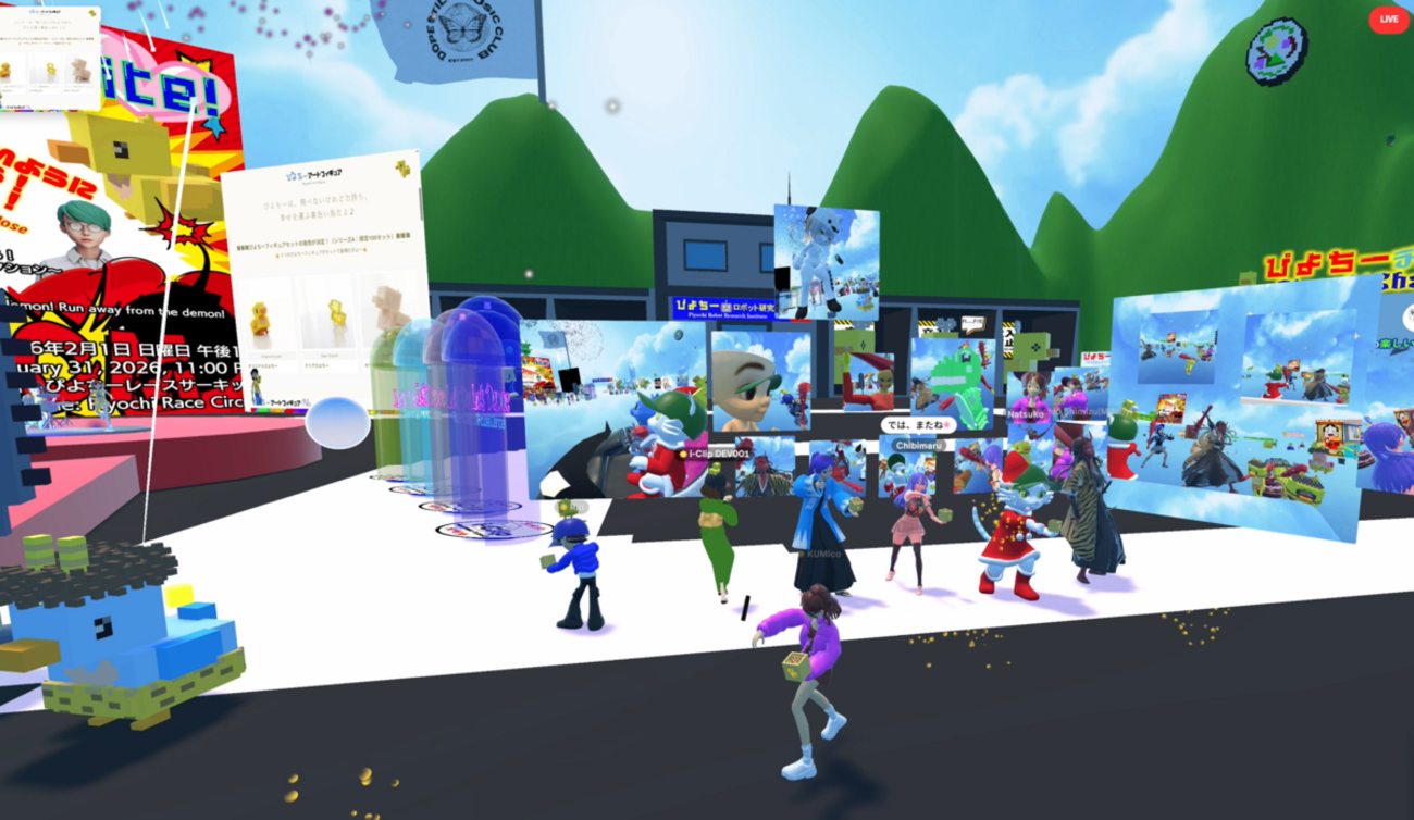 メタバーススペース『ぴよちーレースサーキット』にて、
