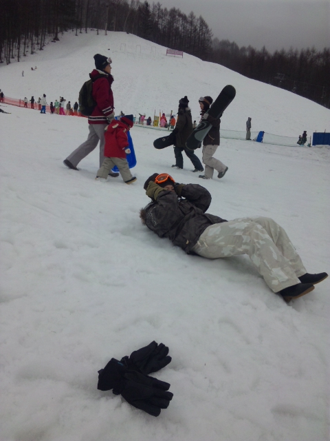 みんな楽しそうに滑ってるのを、腹筋しながらさみしく見てる。