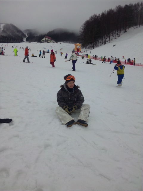 2、3日は安静だから、当然スキーなんか出来るはずもなく、ヤル気だけはみなぎるウェア着て、ゲレンデに佇み中…
