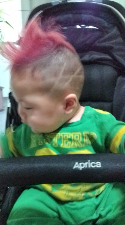 関係ないけど、週末の結婚式に向け見事な髪型にした甥っ子きゅーと。