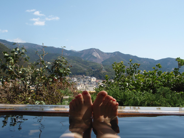 お風呂は写真禁止なのでこないだの下呂温泉の写真で。露天入って休憩して、内湯入って休憩して、また露天入って・・・