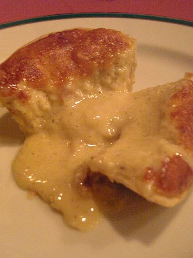 ナイフを入れると、中からチーズが溶け出す。