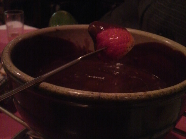 そして、極めつけのデザートは「チョコレートフォンデュ」。私以外の友達はトドメの重さに若干引いてたけど、私としてはかなりあり。