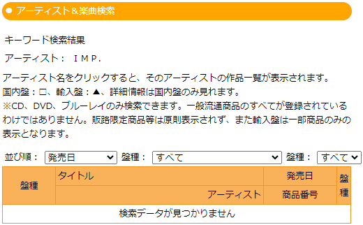↓オリコンはやっぱりCD記録が無いと、デジタルは記録に残らないのよねぇ。正確には記録は残ってるのかもしれないけど、有料の「you大樹」では「Number_i」「IMP.」は「検索データが見つかりません」になってしまいます。なんか一人前に認められてないカンジがしちゃってどうしても寂しくなってしまう。存在を認めてもらってない。みたいな…。