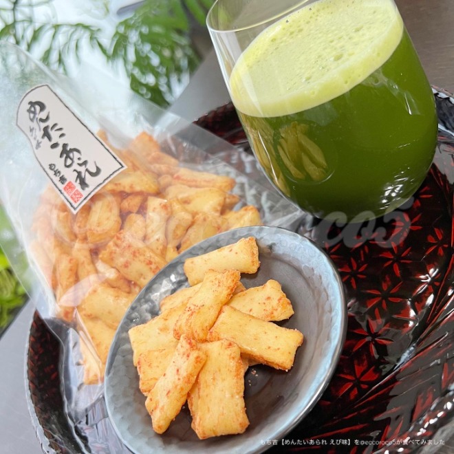 明太子とエビの香りが後引くおいしさで、ちょっと大人な味わいのあられ。