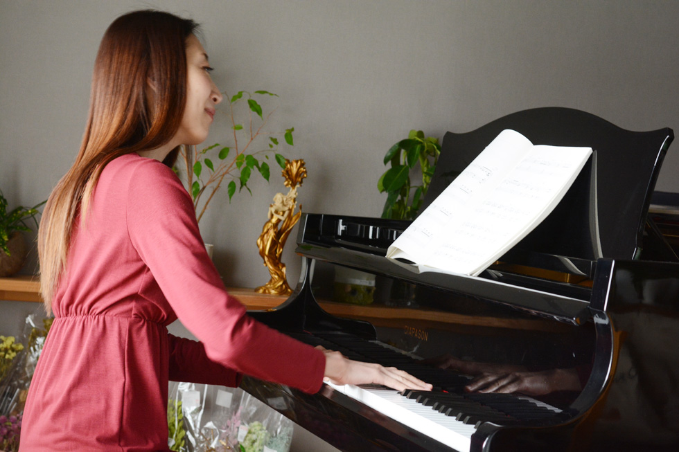 そんな直子先生主催の「ハートフルピアノ教室」のデザインは、あたたかさと、エレガントさ、そして直子先生のかわいらしさを融合したデザインとなっております♪