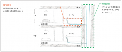 この構造の場合は、上階の排水管をいじることは出来ないので