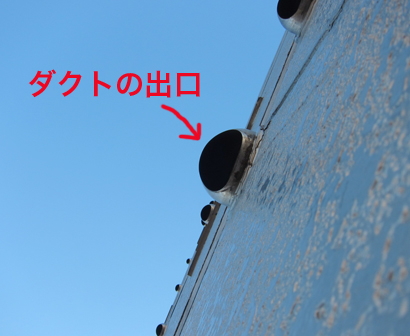 キッチンにあった窓から顔を出して外壁を見てみると、ダクトの出口を発見