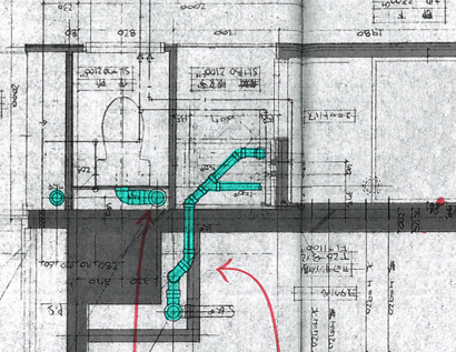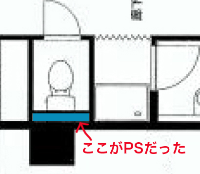『竣工図』を確認したところ、やはりトイレは壁の後ろに汚水用のPSが