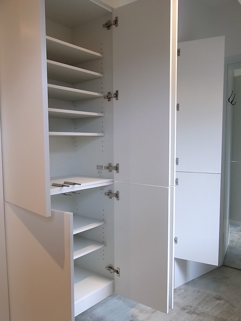 扉と棚を組み合わせて建具工事+大工工事で作ってしまうかなのですが、