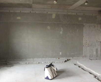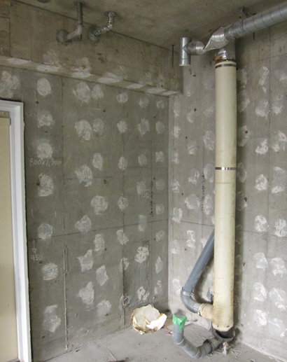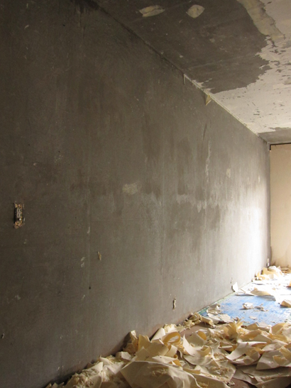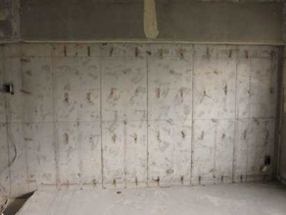 壁の右側はタイルが貼られていた壁を解体した跡なので、