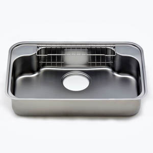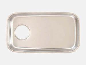 オプションで、専用の水切りかごやまな板もあったり。 こちらはとてもシンプルな形状のシンク。
