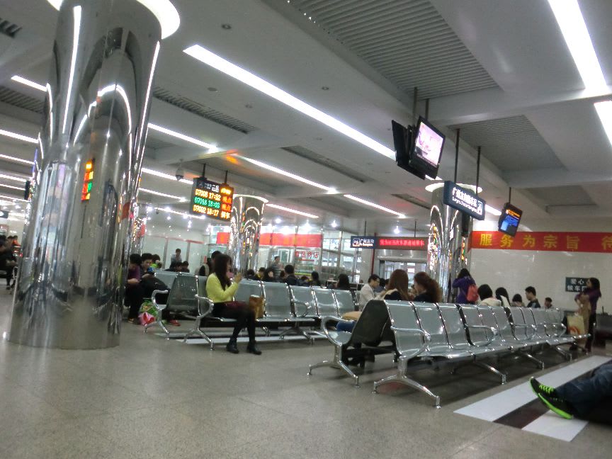 駅の待合室。当駅発は18時17分です、広州駅は17時56分発、この駅から約1時間掛るそうです。でも劉さんが非常に心配しているのですが~~その理由は中国の列車は遅れるのが当たり前(苦笑)