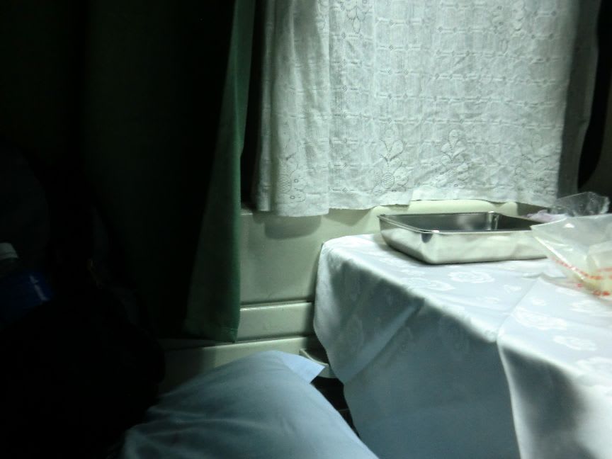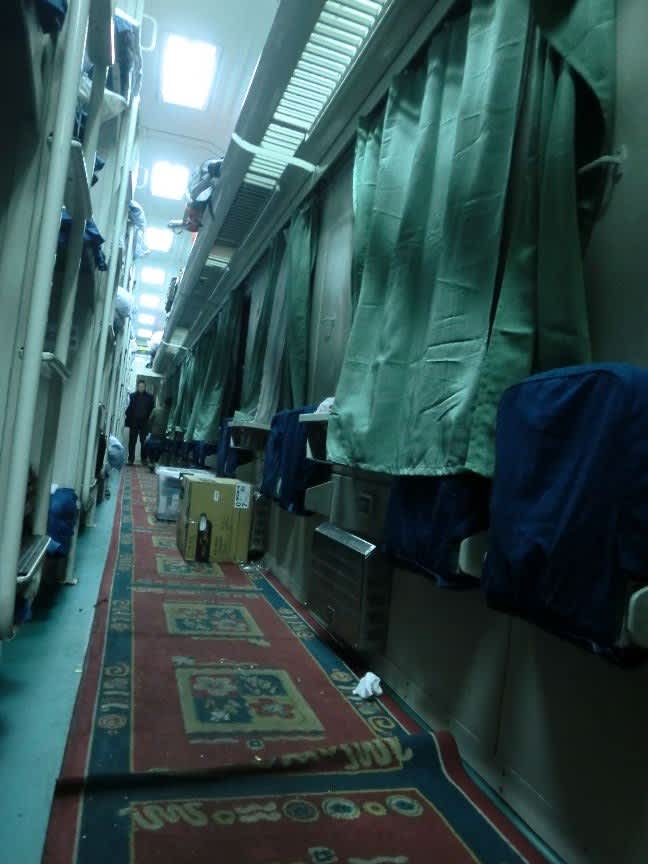 乗ったら、もう寝台式にベットは出来上がっていましたよ。向かいにはおばさんが寝そべってピーナツを食べていました。四人分を予約していたので大半は我々に席ですが、数が多い??1人車両を間違っていた(苦笑)