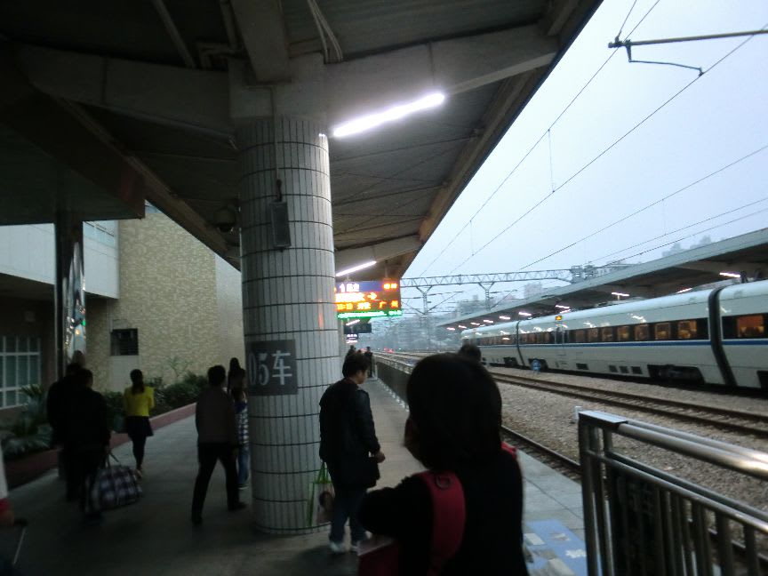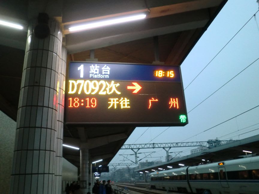 2分遅れでしたね。何とか発車し遅れない事を祈るのみ。 その後、写真を撮る余裕なく広州駅では走って乗り換えに集中、荷物を軽くしていて良かったと思いました~~