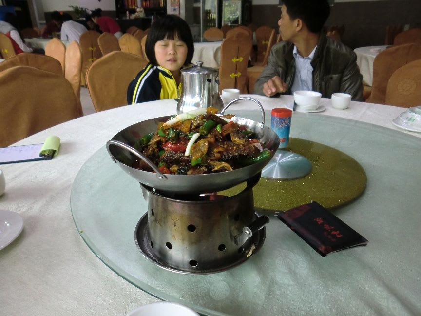 さて、東莞市の大王山公園のお花はまだ早く、残ながら下山して劉さんの義理のお兄さんと姪っ子と一緒にお昼ご飯を食べる事に、当然湖南省の辛い中華料理店へ行きました。