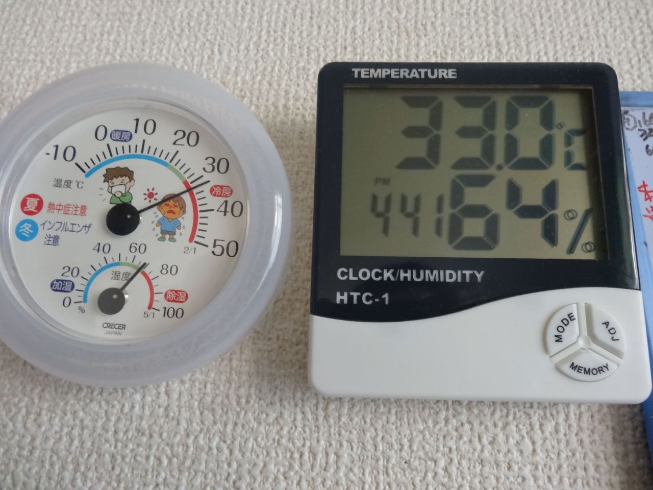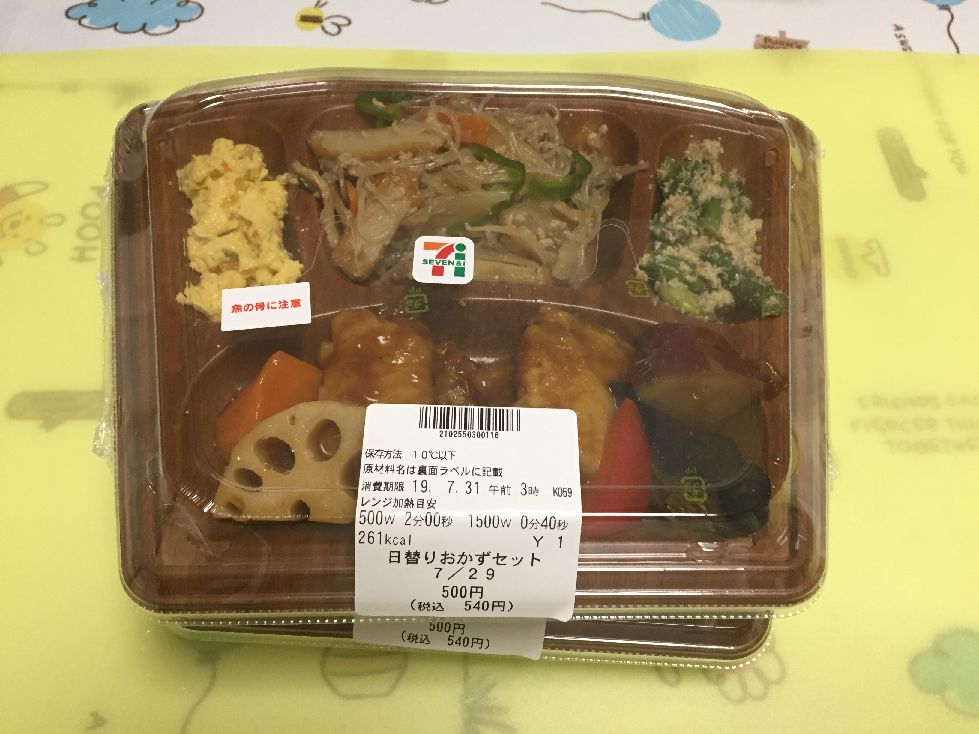 室内の温度~高い~~(-_-;)まだ、婆さんの手が完全ではなくセブンイレブンのオカズにお世話に成ってます^^ いつも色々な種類が提供され、1つの楽しみですね。量的には多くはありませんが、爺婆には丁度良い加減でしょう~~(^^ 健康を維持するにはちゃんと食べるものは摂取せねばダウンしますよ^^皆さんも食欲無いと思っても多少無理にでも頂きましょう~~爺は朝にはお腹が空きますよ^^ しかし暑いですよね~~堪りませんよ。外は毎日35度以上ですね~~散歩等出来ません。部屋は~~ 温度33度、湿度64%です、倒れそう~~~ははは 元気な秘訣は食事してお酒飲んで好みの趣味に勤しむ事ですよ~~