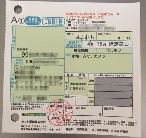 最近運輸や宅急便に話が多いですが、ヤフオクの発送手配は”楽チン”なんですよね~~落札者が支払いを完了すると発送手続きへ移行しますが、出品時に発送方法を指定しており落札者が選択すれば出品者は発送手続きにて、今回は宅急便コンパクトですから、精密機械+コワレモノを選択しバーコードを出せば終わりです。スマホにバーコード又がQRコードを表示されます、スマホ持参でヤマト運輸の営業所へ行けば、店舗のタブレットでQRコードを読み取れば、プリンターから送付票が出て来て半券(控え)を渡されます、