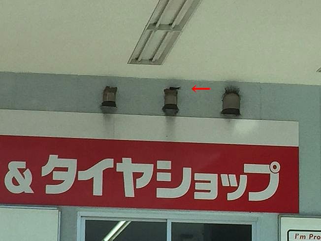 それは~見えますか?お店のライトの上に燕が巣を作って居まして、卵が有るのでしょう~雄雌入れ替わって温めております。