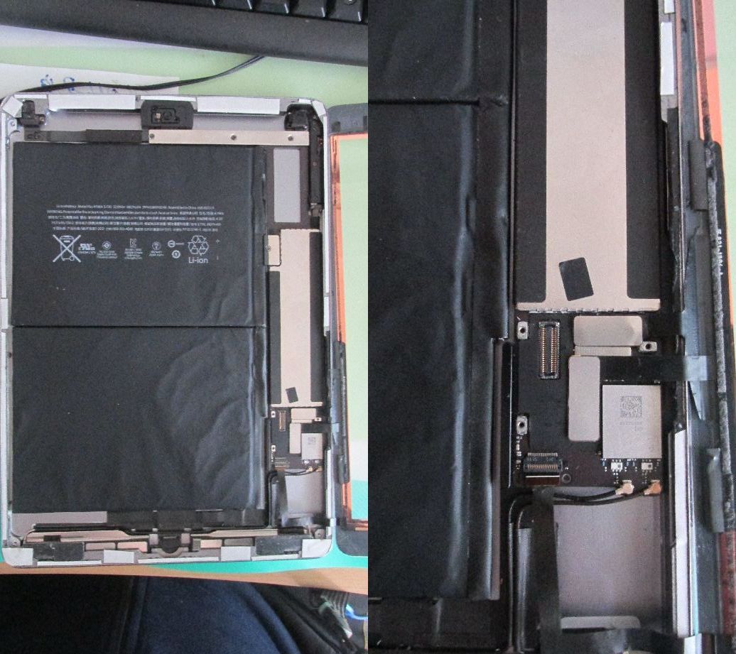 そうです、左が全体のipad内部ですがゴーストタッチはCPU本体の筐体とのアースが悪いのか?何故かCPUが浮いているんだな~~(これが原因かは不明)固定させる螺子など見当たらず??右側がCPUんの拡大写真、ガラスのコネクターを接続してます。