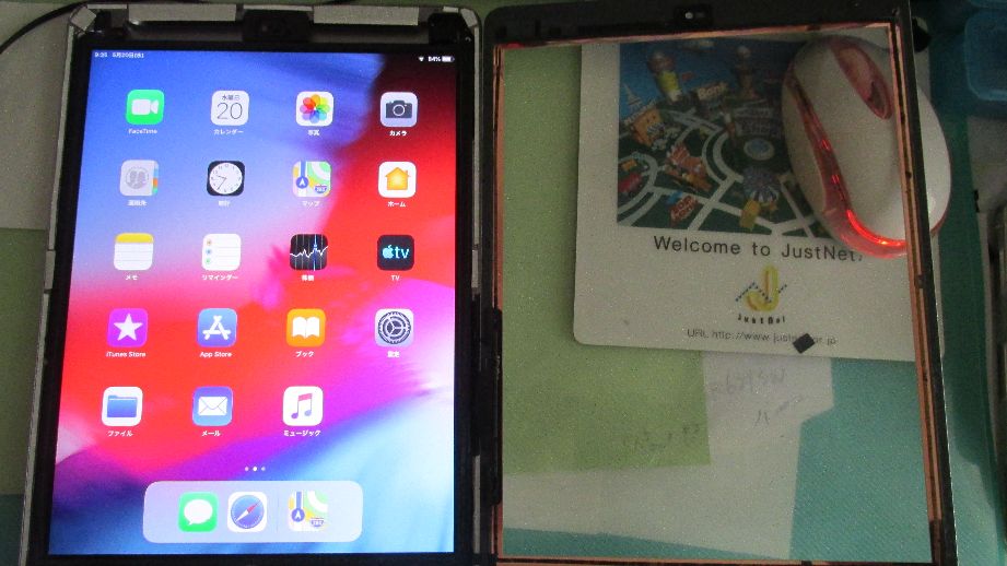 そこで今日はipad air1を数台分解して1部は先日ヤフオクへ出品しましたね、今日は別の本体で破損したガラスと液晶を交換して完了させた訳ですが~画面タッチがどうもオカシイ?ゴーストタッチ?
