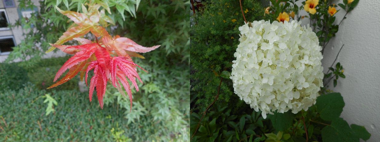 朝は涼しく、もっと早く起きて家を出る予定でしたが2度寝して目覚めたのが7時過ぎ^^今日は歯磨きもせずに出かけましたよ~~曇りでしたもので涼しい~~途中の紅葉の新緑?やお花をパチリ