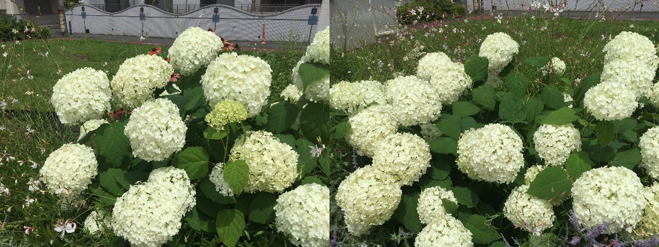 そして戻る際、区役所近くの国道の交差点近くに咲いていた白い紫陽花群ですよ^^