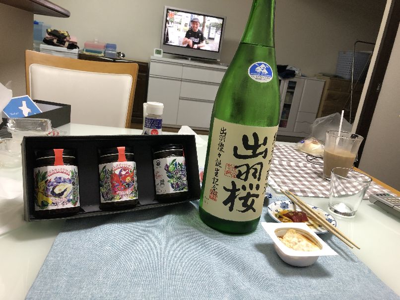 2日目は、今月は爺の誕生日でもあり娘から牡蠣アビージョを、息子から宅急便が届き爺の好みのお酒「出羽桜」が入っていました。今日の晩餐は有るもので貰ったもので^^