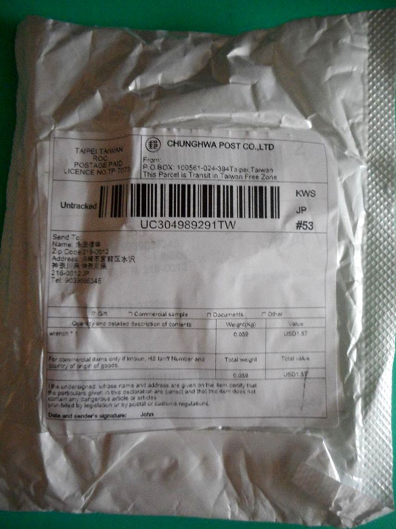 確かに後数点の注文をしているが、届く予定は9月に入っての筈だがな~?ま~早く着くのはOKだよ^^と思いつつ、内容を見たら台湾からの発送だな~~