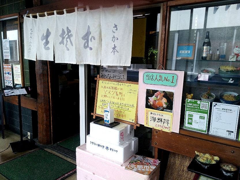 その店は「生そば さか本」です^^蕎麦屋さんがね~店はカウンターが5席程?テーブル4人掛けが7席は有ったかな~でもコロナ過の時期ですからね~大半離れて2人づつ掛けてます。
