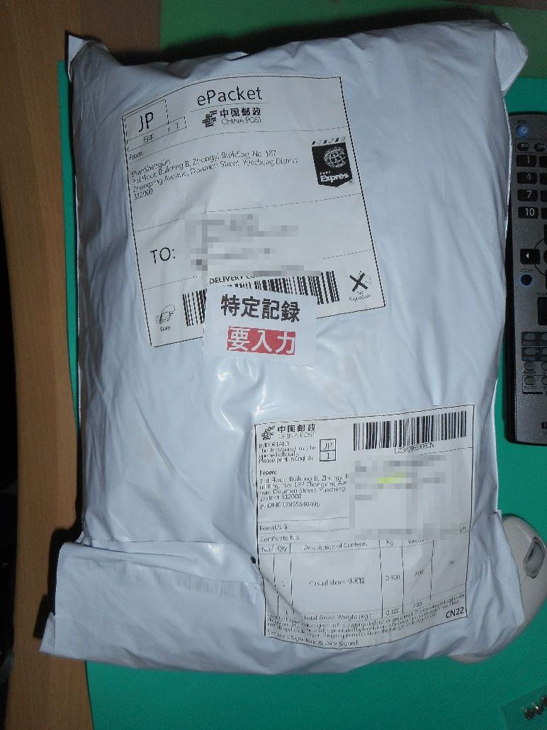 重くて足の幅が窮屈らしく、なら爺に履いているシューズは軽くて網目で幅も緩めで良いのではないかと注文していた。そのシューズがこんな袋に入って届きました。