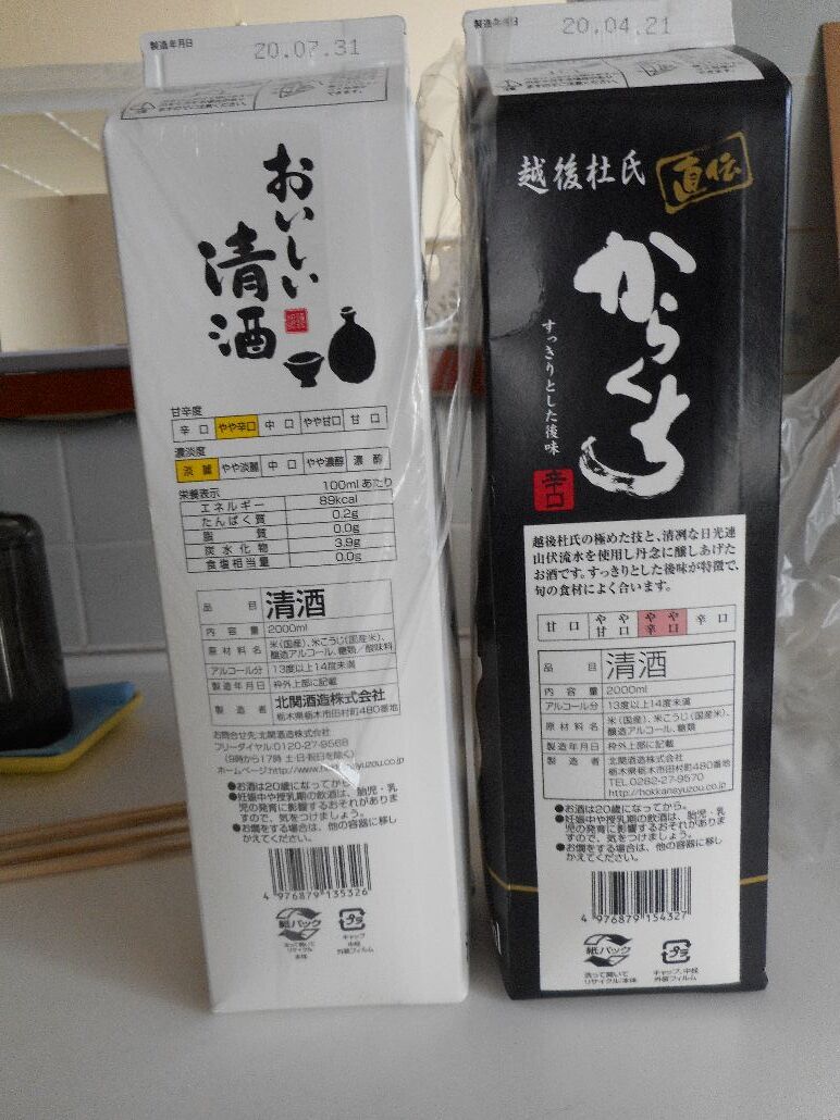 右の黒いのが生協で購入していた「越後杜氏 直伝 からくち」ですよ^^