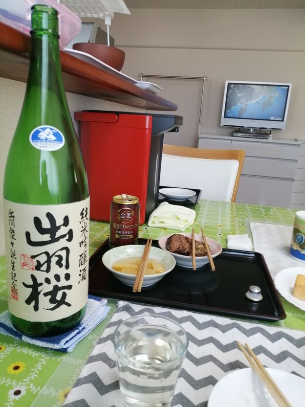 好きな日本酒「出羽桜」の純米酒で新年を迎えておりますよ~~、しかし2日で無くなりました~?誰が飲んだんだよ~~