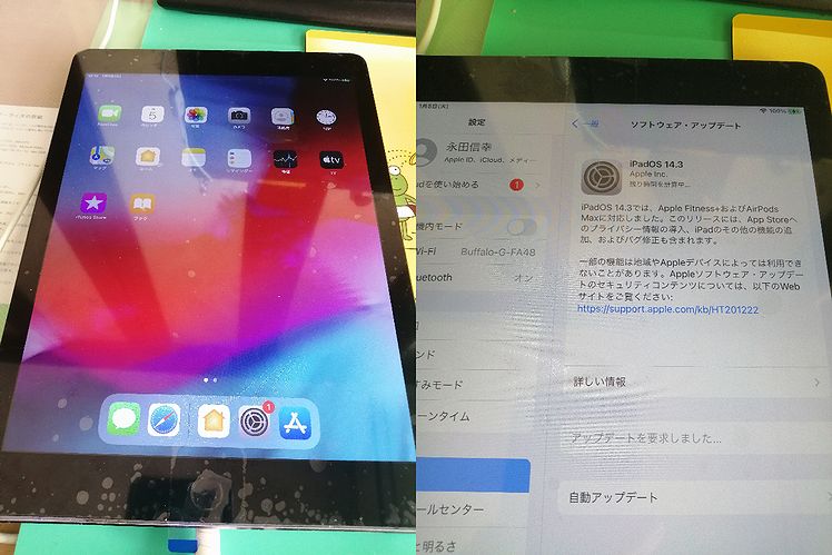右側はiOSのアップデートも確認出来ました。ヒートランを継続して最終的に両面テープを貼って終了の予定です。