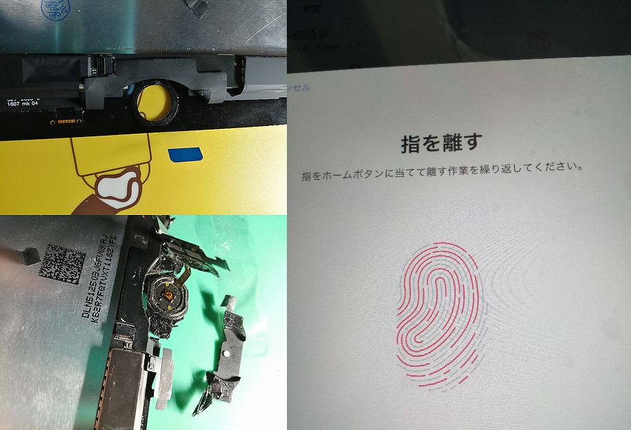 そんな作業状況の中で、ホームボタンは指紋認証が可能なものでして、このICが本体との連動しており、チャンと機能するのか不安もありました。仮に取り付けてテストした際には認識しなかったもので不安が募りましたが、数度のやり取り後チャンと取り付けたら無事に認証できましたよ^^